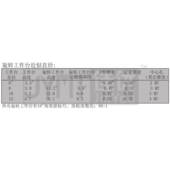 轉(zhuǎn)盤(pán)工作臺(tái) ·高等級(jí)鑄件制成 ·精確磨削平行度 0.0006" ·所有T型槽經(jīng)機(jī)加工 ·精確刻度等級(jí)以度遞進(jìn) ·中心孔是一個(gè)3號(hào)莫氏錐度孔